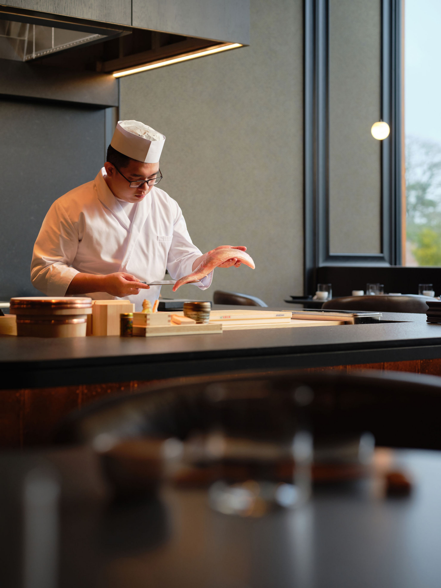 Our sushi chef, Chef Jan Vincent Amo brings artistry and precision to every dish. Blending time-honoured techniques with contemporary flair, he ensures that every dish is a masterpiece. From the crisp harmony of Bluefin Tuna Shibaki to the earthy warmth of Truffled Wagyu Donburi, the culinary experience at Ōku has been designed to reflect both authentic Japanese flavours and the richness of Ireland’s natural bounty.