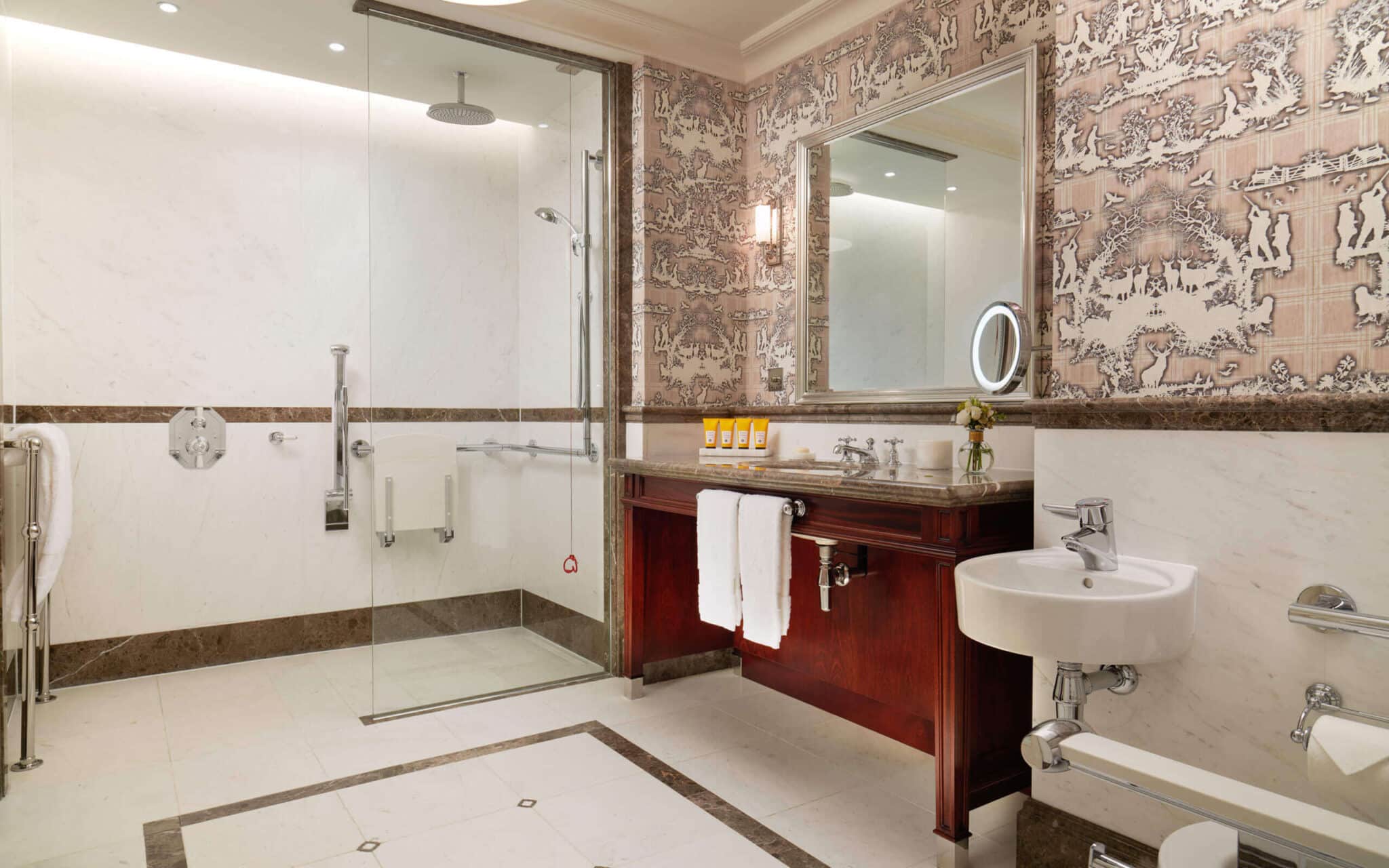 Experience comfort without compromise in our beautiful Deluxe Accessible Rooms. With 592 square feet/55 square metres of space, navigation is eased and freedom of movement is assured. Enjoy the timeless elegance of your individually-designed room, featuring charming historical wall hangings in linen or tapestry and mahogany Georgian-style furniture. Your spacious marble bathroom features a roll-in shower and shower chair. Appropriate grab rails have been installed, along with emergency pull cords in the shower and beside the bed to give you full peace of mind. With lovely views of our impressive courtyard and a full range of luxurious amenities, your room is a haven of peace and beauty.